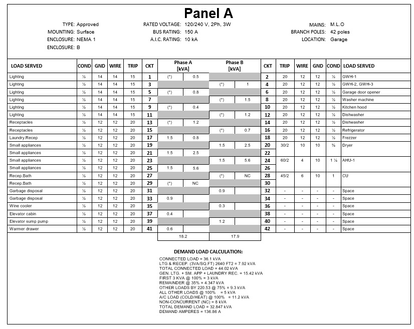 It is added the classification of normal and distribution panels, the allowable currents of NFPA 70 standard for copper 60°C, 75°C and 90°C, and a single line diagram design. |