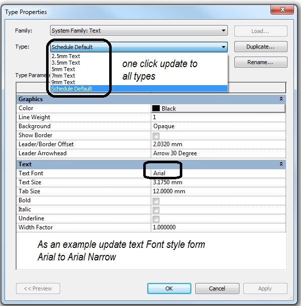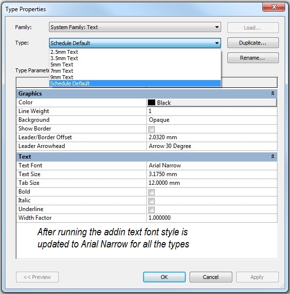 "Text Note Style of loaded Families in this project" - to update all the loaded families’ text note style.