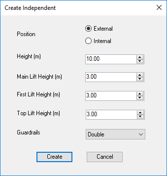 - The *Create Scaffold* button allows an independent to be created around existing model walls or lines. - The *Bill of Materials* tool provides a material list for the scaffolding you have created. |