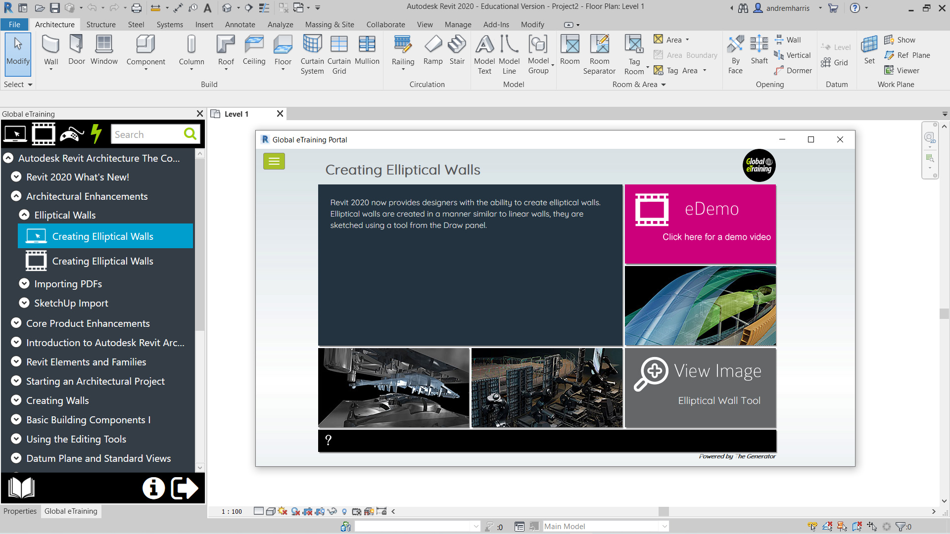 While the user interacts with their software, relevant content from the ‘GeT Everything’ library is loaded in a dockable window, including access to full course material.