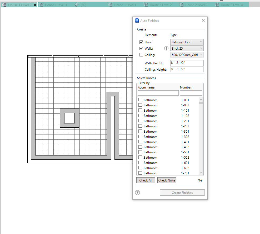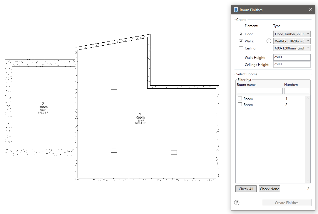 This Autodesk® Revit® plugin helps you save time when assigning room finishes - floor tiles, walls and ceilings.