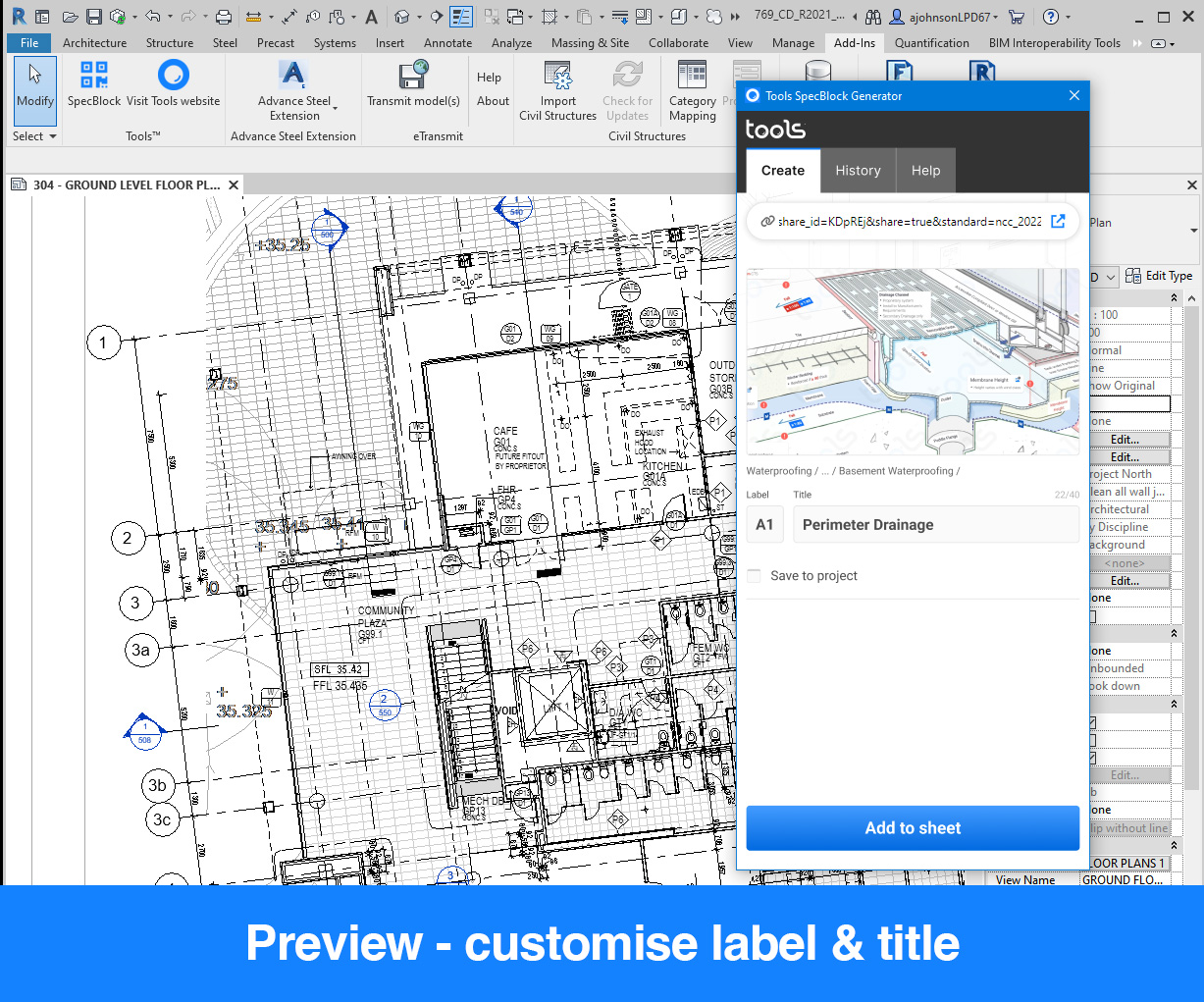 SpecBlocks™ must be added to Sheets only, will not display correctly in views or viewports.