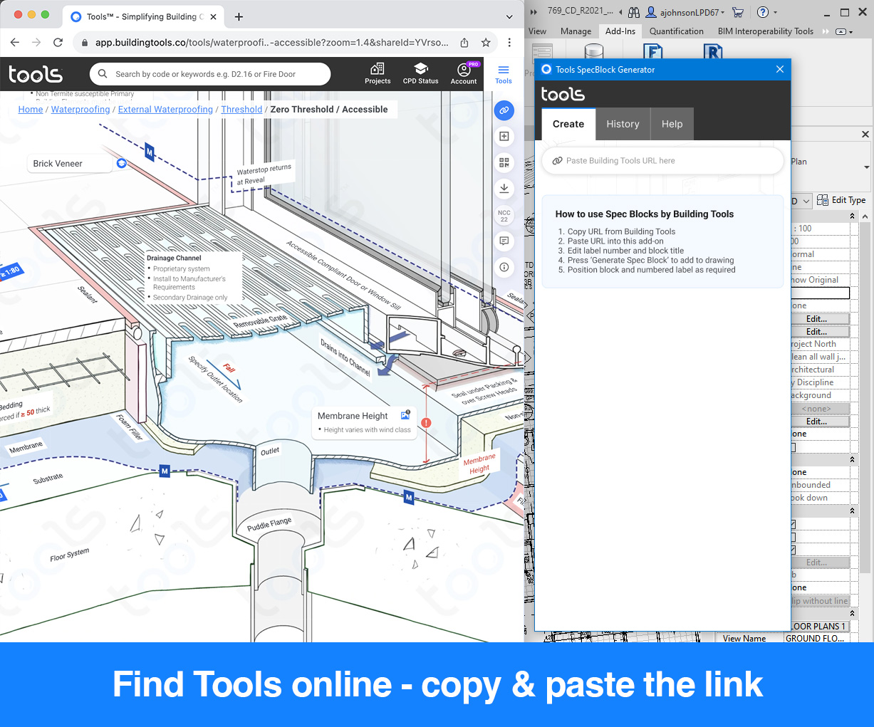 3. Paste the URL copied from Building Tools™ into the add-on.