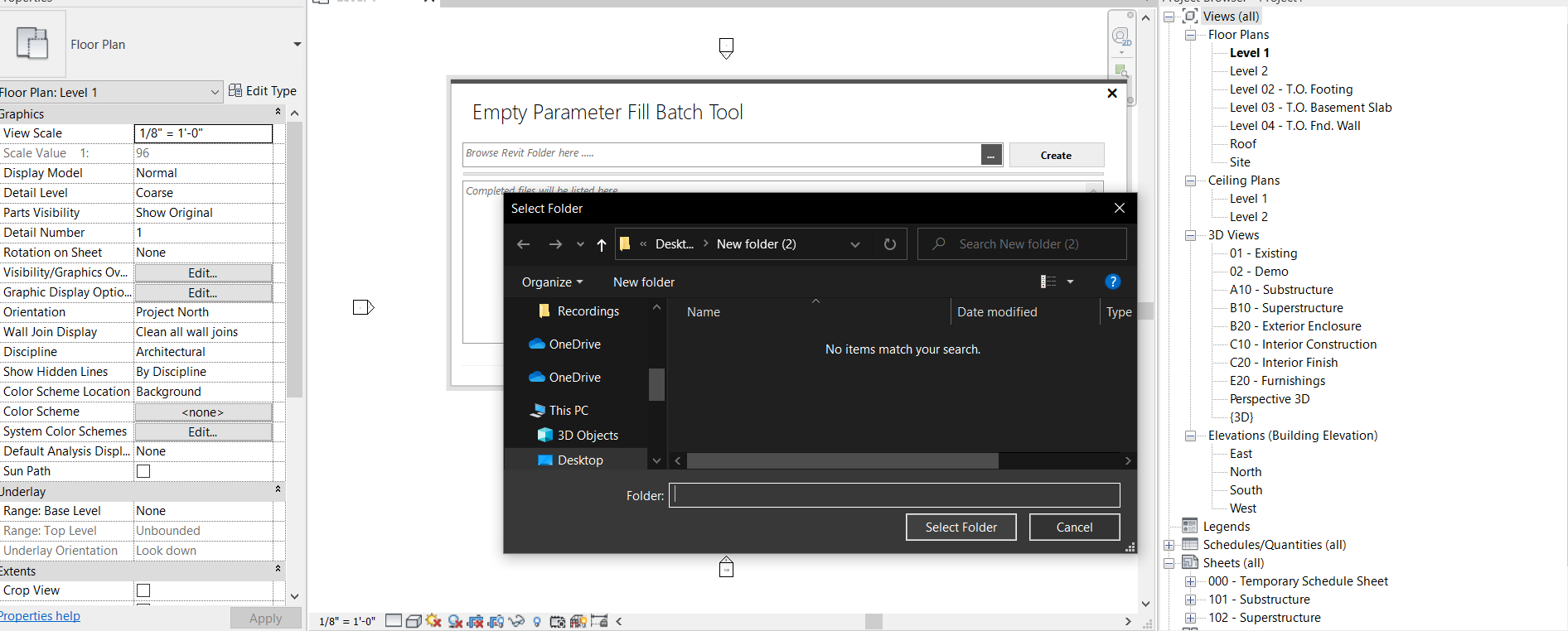 - The plug-in removes the parameters of the Revit files from the Browsed folder.