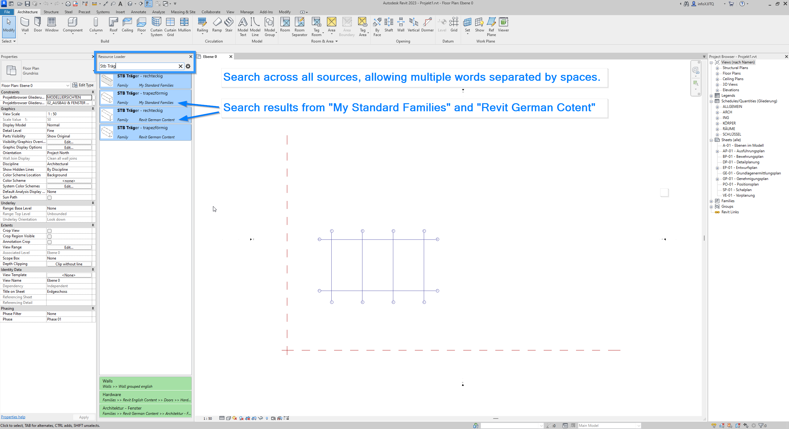 The Resource Loader offers you one of the quickest and easiest ways to place families and system families in your projects. With a dockable window, you get access to all your family libraries and system family types.