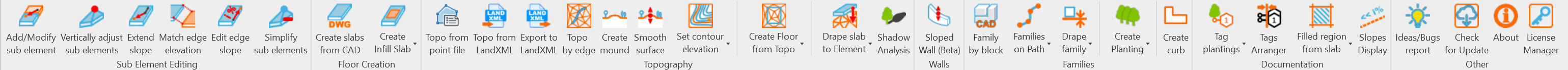 - [NEW] Export to LandXML (https://youtu.be/xwSlPoTASuI): Export toposurface or slab's surface to LandXML file to exchange data with other engineering applications