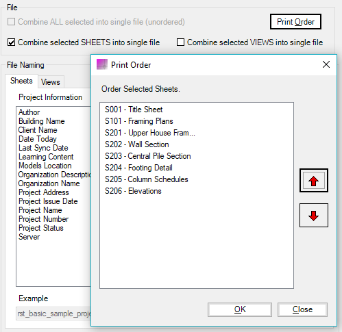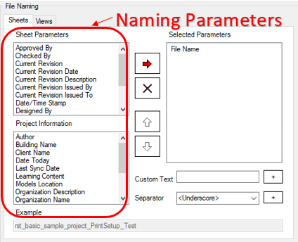 The advanced filename rules utilize sheet, view and project information parameters to compose file naming rules. You also have the option to utilize separators and bespoke text within the naming rules providing unlimited possibilities.