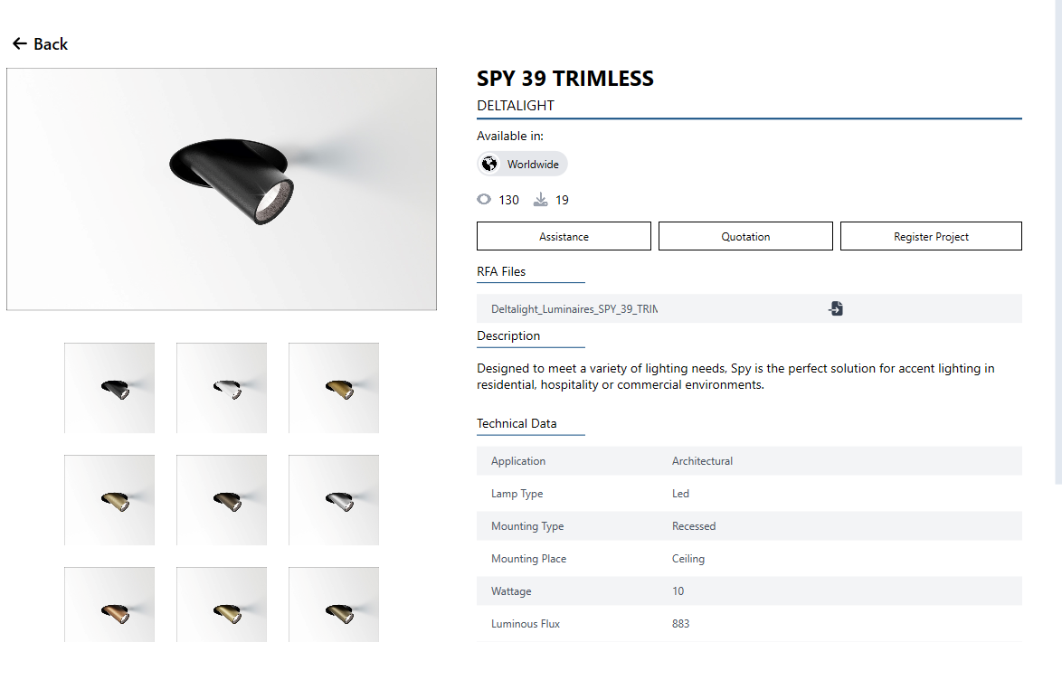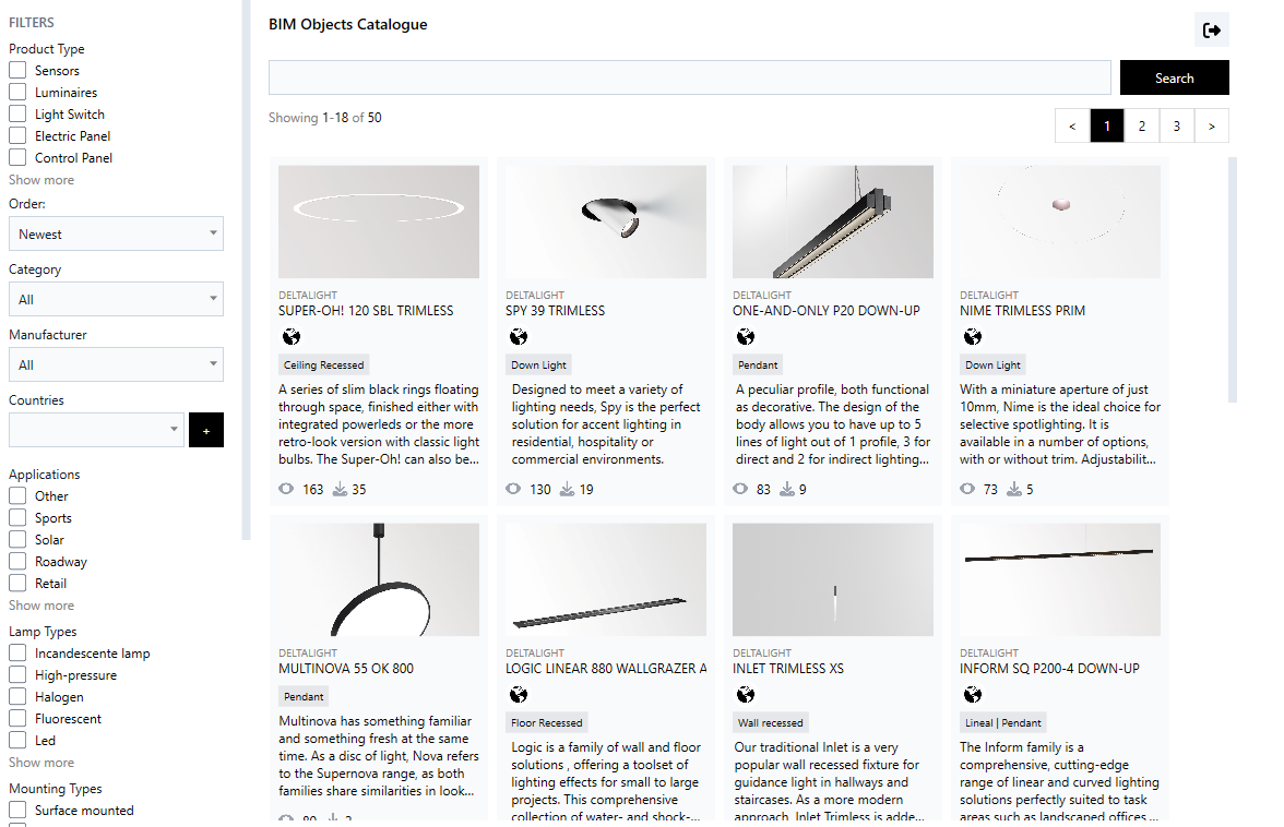 • Download high-quality lighting families, compatible with Revit.