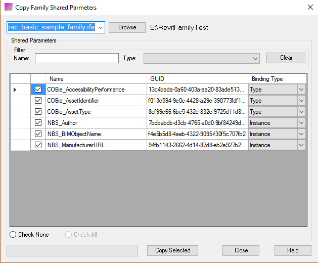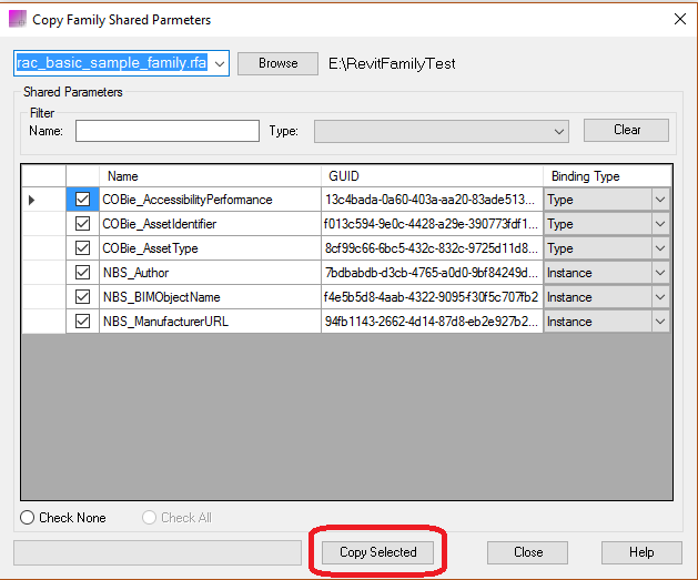 This application allows you to copy multiple shared parameters from one Family to another with as few as two mouse clicks.