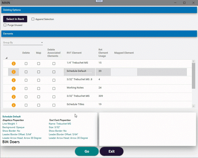 Analysis and Identification: BIM Janitor initiates by thoroughly analyzing the Revit model to identify all existing patterns and styles, along with their respective usages. This initial analysis provides users with a comprehensive overview of the clutter present within the project.