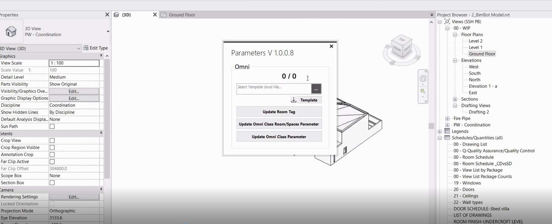 Omni Class parameter Tool - this will set the Omni parameters for all elements and each parameter fills the element details in the Autodesk® Revit® model and updates. The Omni Space and Room parameter will fill the room description and number for each room and space and room Tag for all Room names.