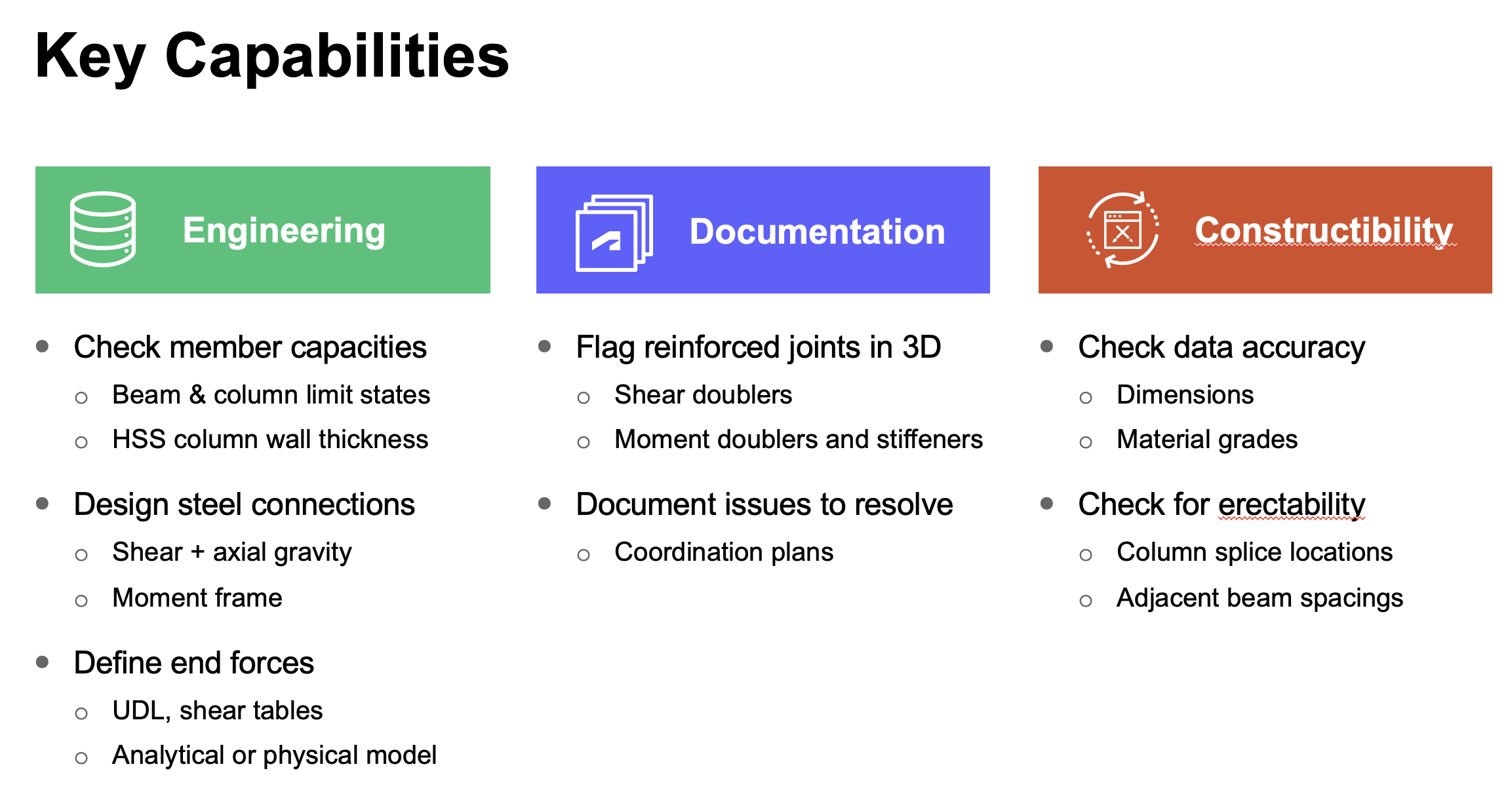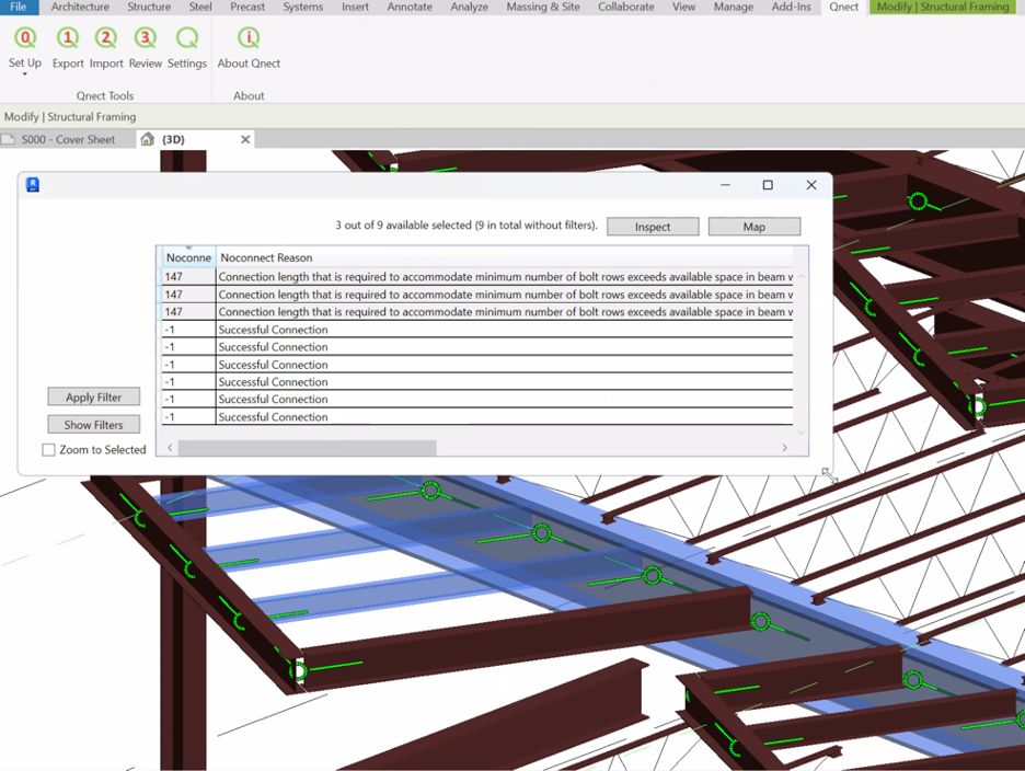 Qnect has announced the commercial release of Qnect for Autodesk® Revit®. The cloud-based solution detects steel issues early in design so engineers can resolve them before becoming RFIs. The tool detects issues related to modeling accuracy, constructability, and engineering of the structural frame due to the connection design and detailing. The software also identifies joints requiring special reinforcement such as doublers and stiffeners to more quickly document such complex engineering details.