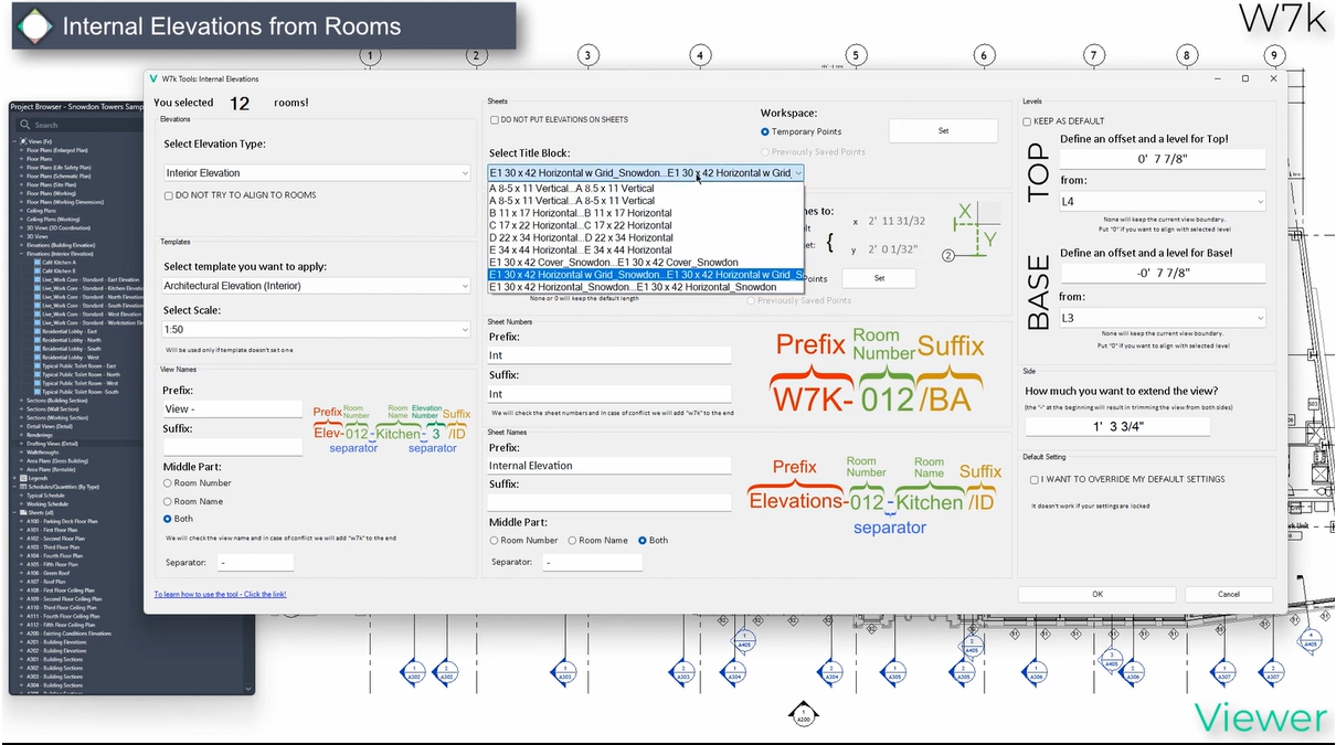 Currently, our tool allows you to generate internal elevations from selected rooms. Just think about all these 100 rooms you need to elevate… Countless hours of your creativity and productivity would have been wasted…