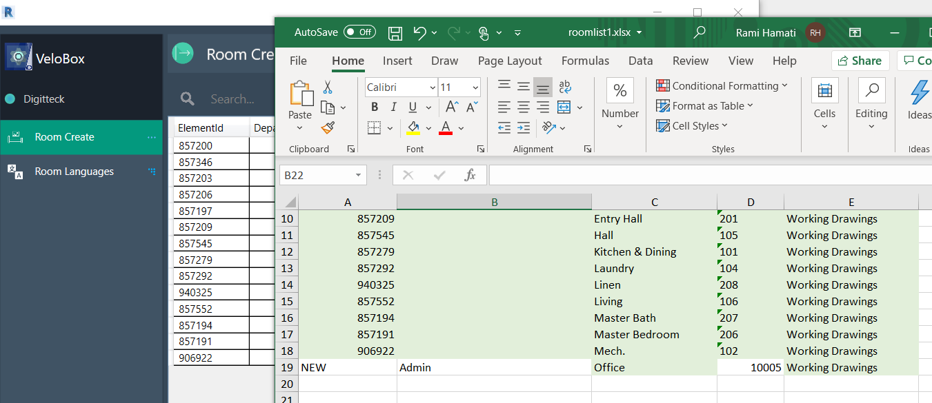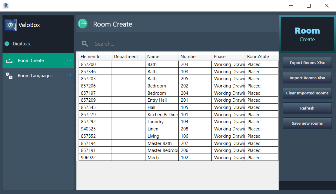 Feature 1 - RoomCreate: You can create an Excel file with rooms you want to create, assign the name, number, and department, and import that list with the add-in. The add-in will take care of creating the rooms for you.