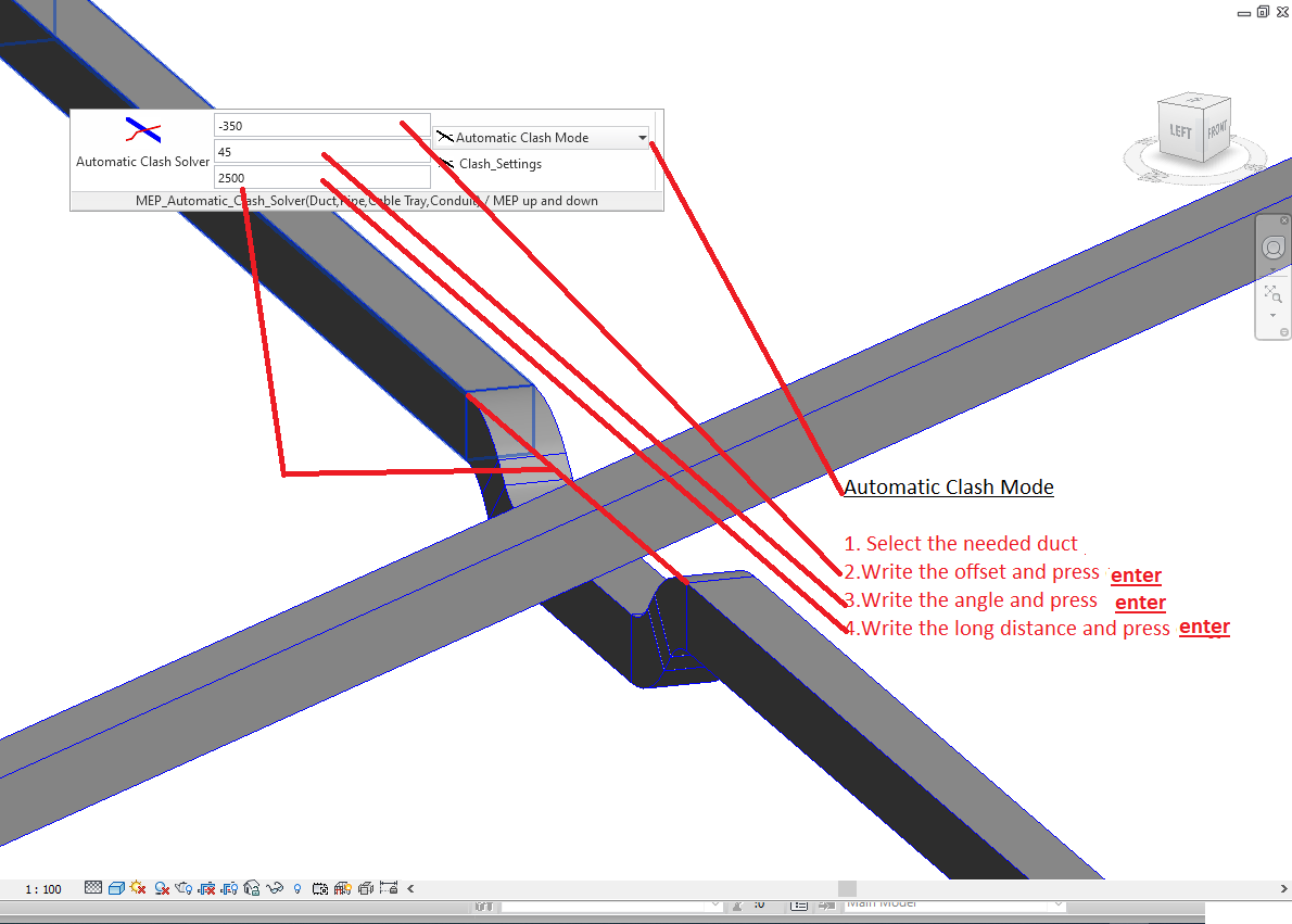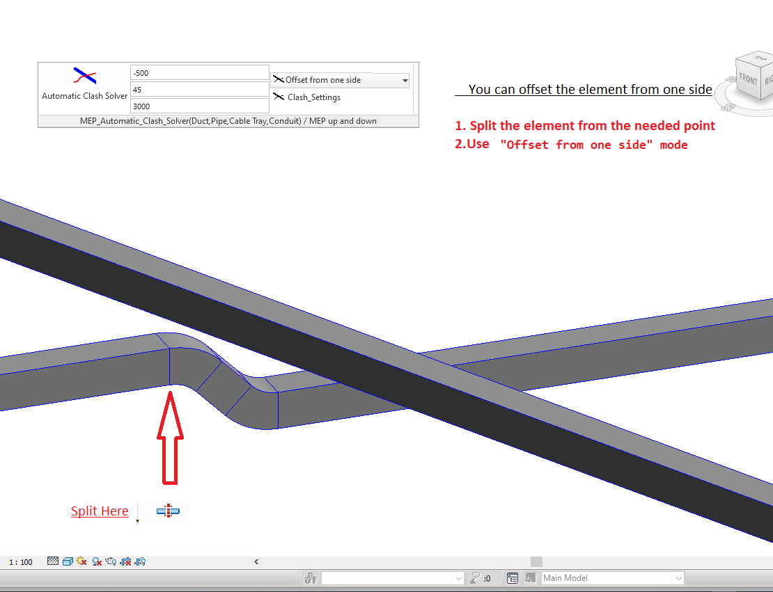 This tool will automatically solve these clashes depending on an accurate setting to define the offset, angle, and distance of the newly created elements which will solve the clash.
