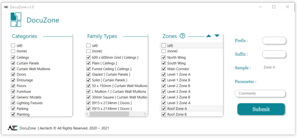 DocuZone detects elements within Zones (Scope Boxes), and writes respective Zone names to elements' parameter.
