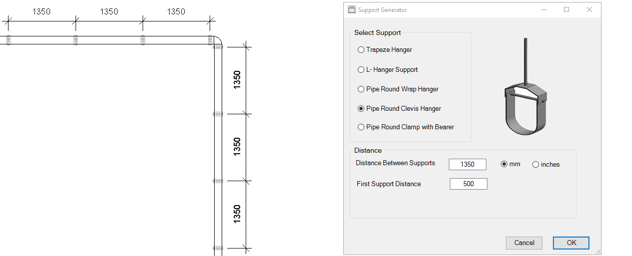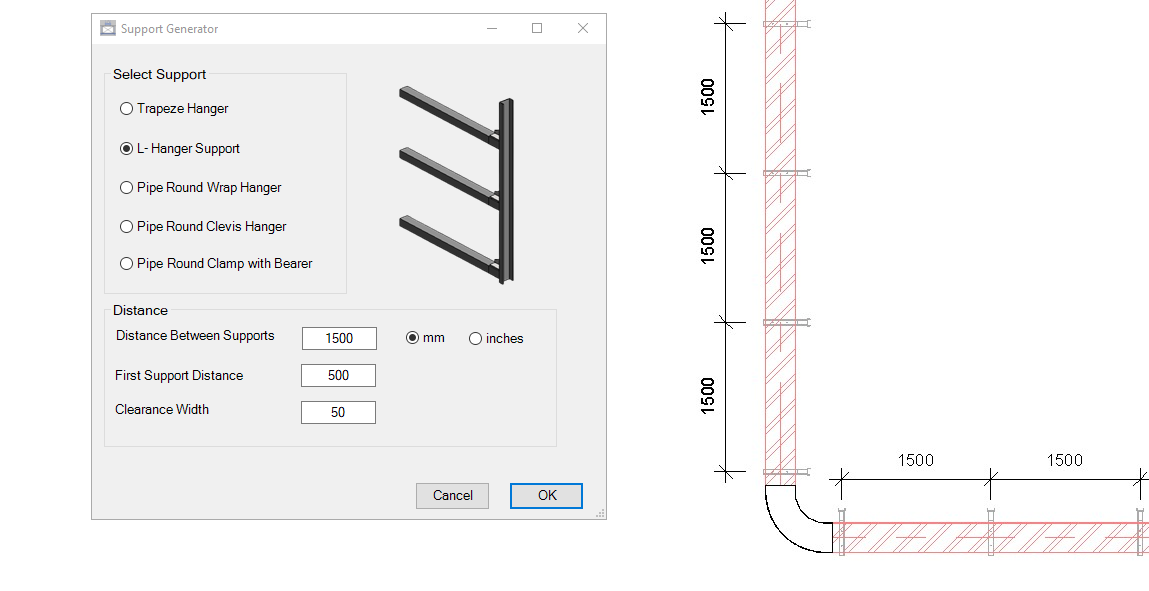 This tool is designed to distribute hanger supports along (Cable Trays,Ducts and Pipes) for different types of MEP supports: