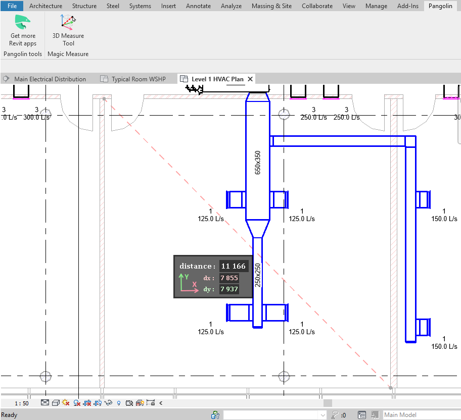 Of course, you can also use this add-in in a 2D view. Useful to get the horizontal and vertical components of a given distance.