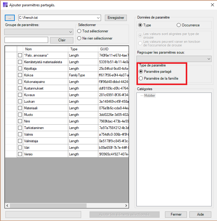 Cette application vous permet d’ajouter plusieurs paramètres partagés pour un projet ou un modèle. Il permet également de multiples paramètres partagés d’être ajouté à une famille, comme un paramètre partagé ou paramètre de la famille.