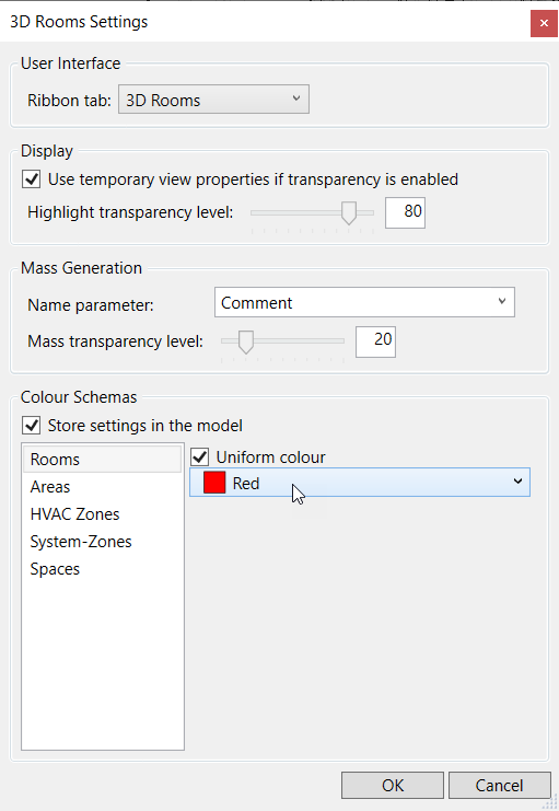 • Generates Mass elements for the spatial elements, copies the room name to a custom parameter of the Mass.