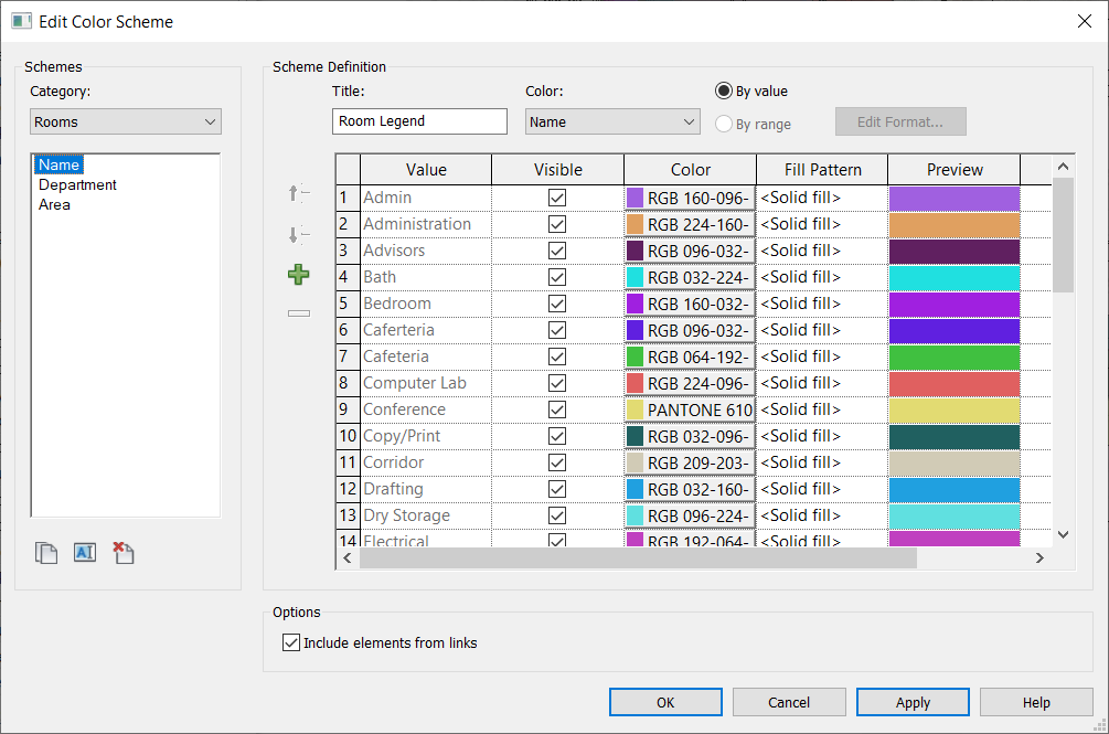 • Uses uniform colors or Autodesk® Revit® color schemes (supported in 2021 only).