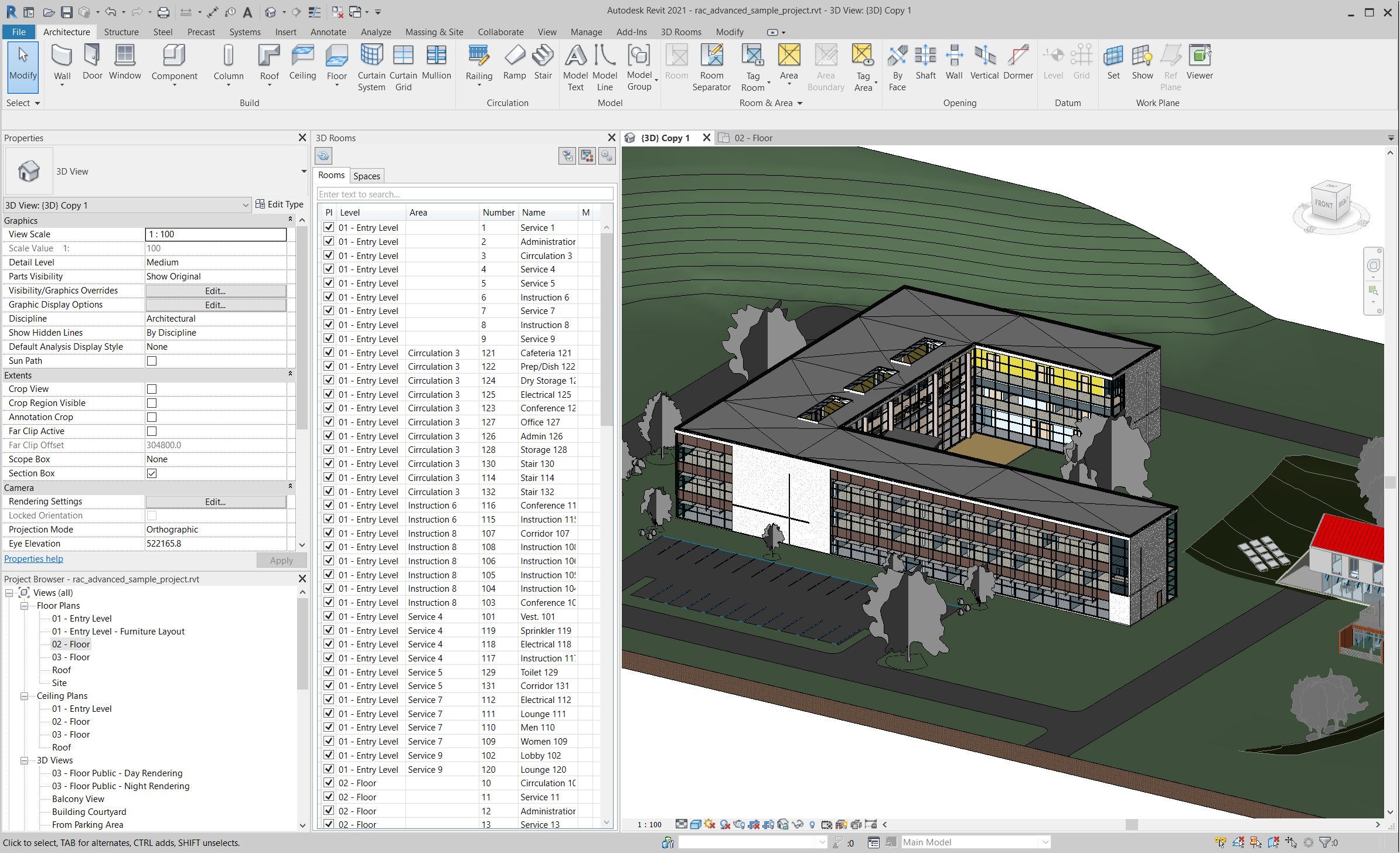 • Highlights selected Rooms, Areas, Spaces, Zones and System-Zones in 3D.