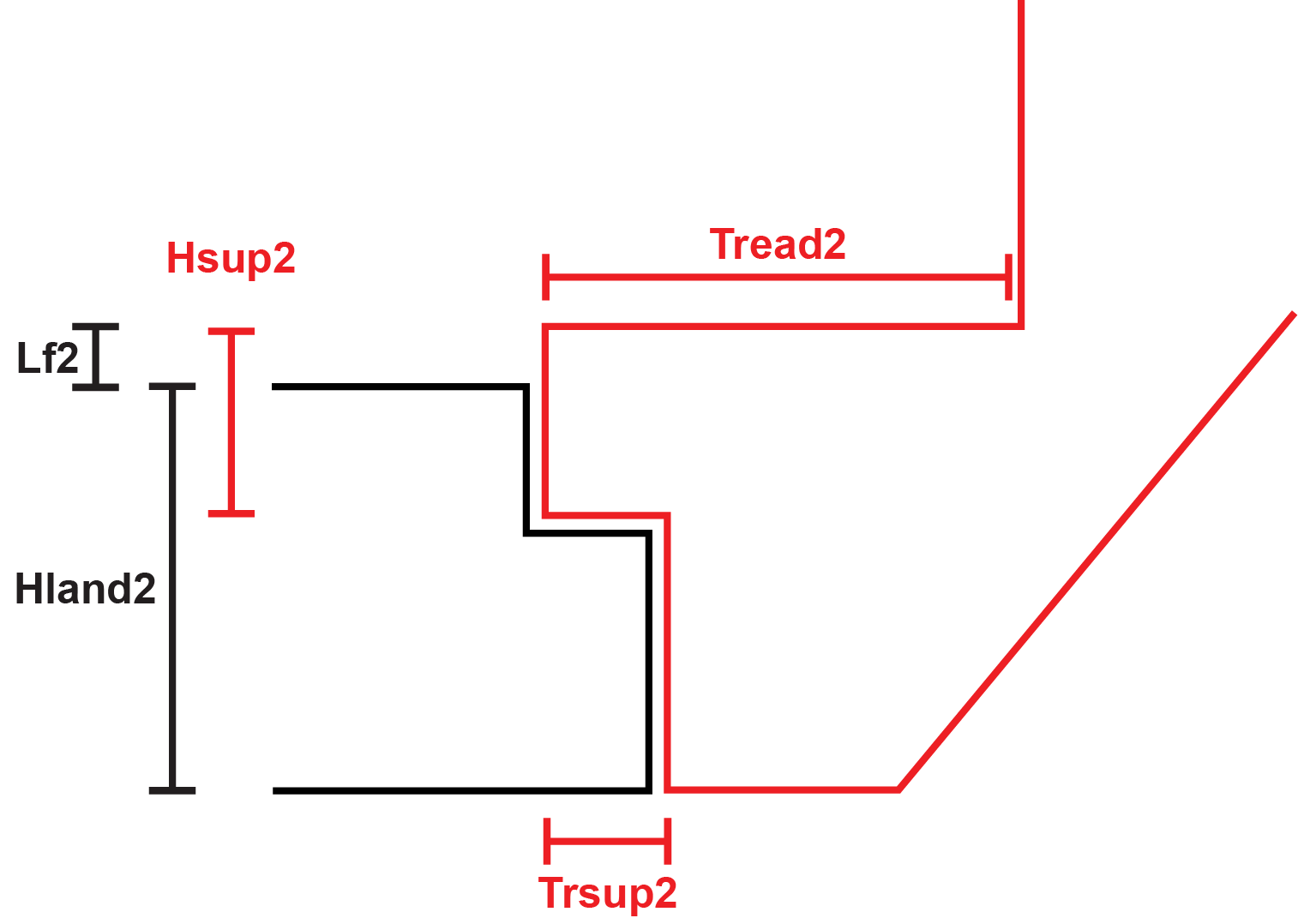 Upper support parameters: These are the dimensions of the upper landing and support of the staircase, such as:
