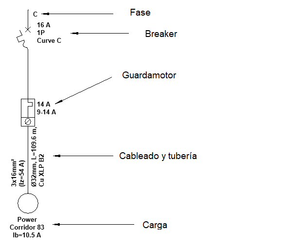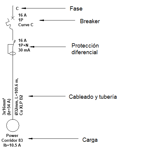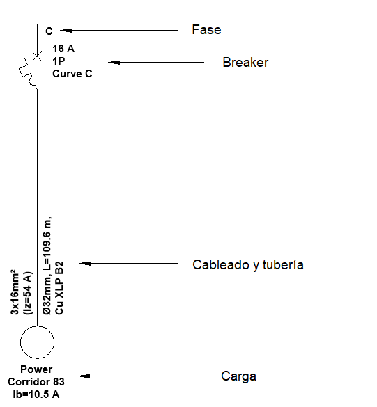 Si NV (Sin valor) es mayor que 8000 A, la aplicación calculará el circuito para 1 VA. Para los circuitos sin conexión a un panel eléctrico, utilizará 10 metros de sp_length o el valor que el usuario introduzca.