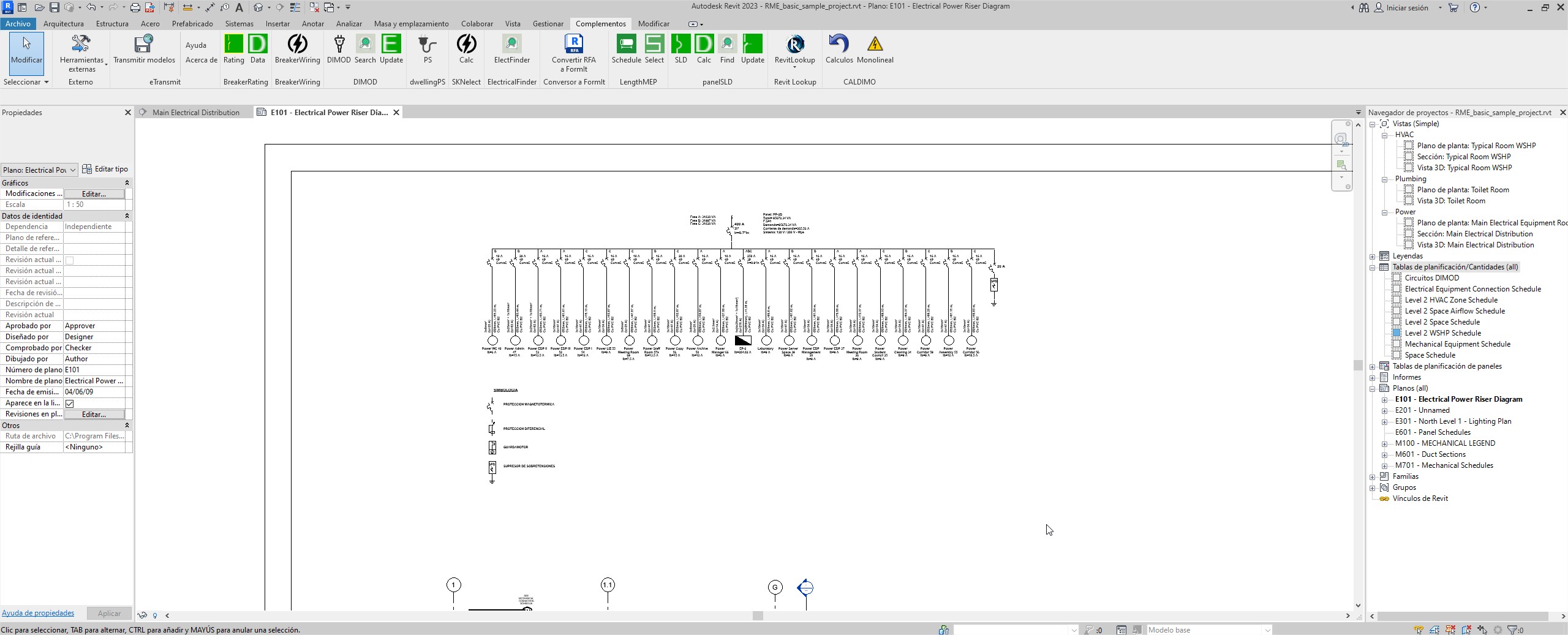 El diagrama unifilar solo se puede dibujar en una hoja de vista activada. El usuario debe seleccionar el panel eléctrico, introducir el factor de simultaneidad y pulsar el botón "Dibujar".