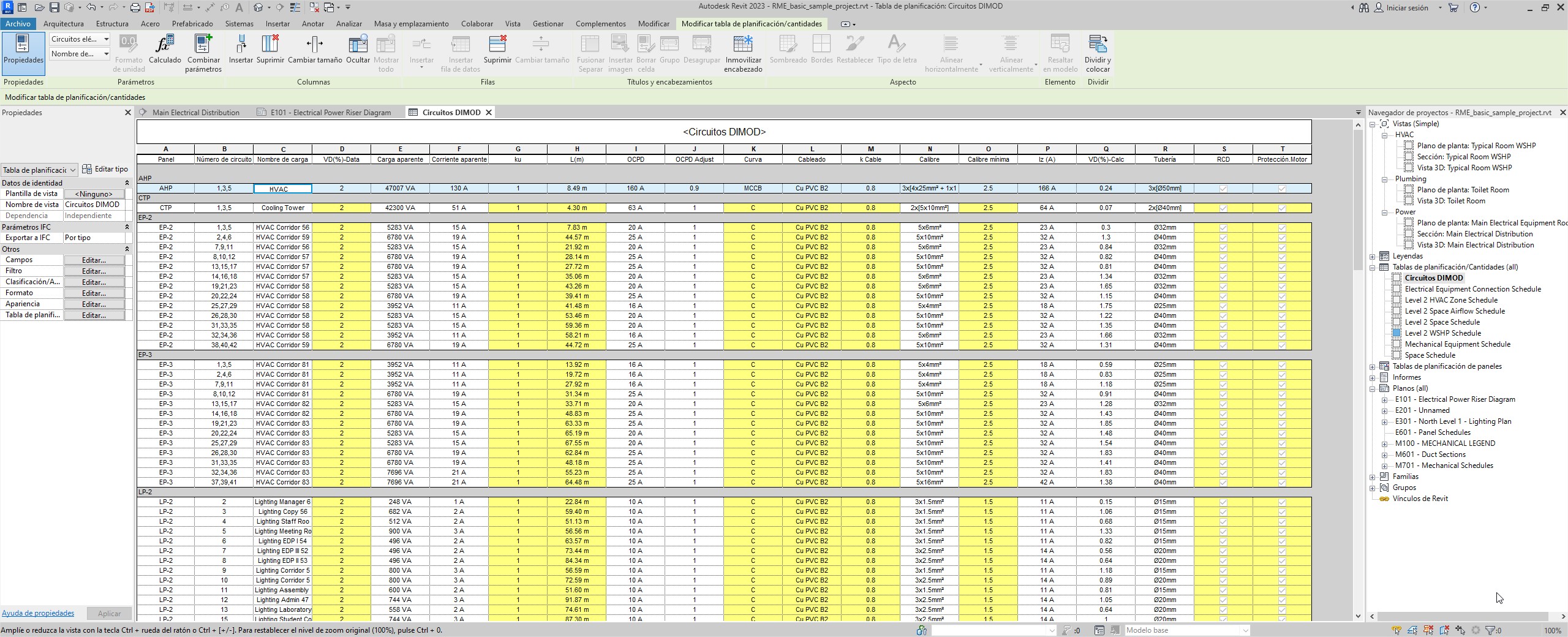 El complemento listará todos los paneles eléctricos (equipos eléctricos como tableros de distribución, transformadores y cuadros de distribución) que constituyen circuitos eléctricos. El usuario debe crear un circuito eléctrico con cada panel eléctrico (circuito formado por un elemento) para que se muestre en la lista.