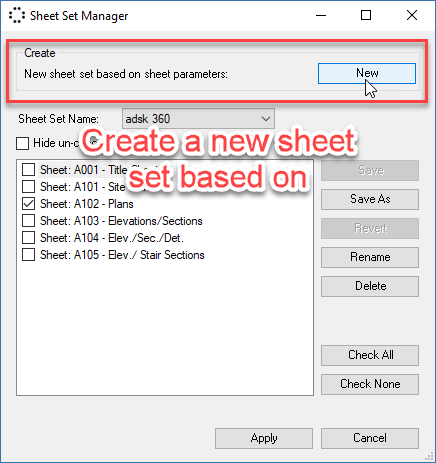Also, you could create new ones by using a table and filtering sheets based on their parameters. This is very practical because most of the time there are too many sheets and it's hard to select the desired ones. And as a result, the probability of mistakes in selection sheets will increase. This plugin helps you to create sheet sets easily by a filtered table.