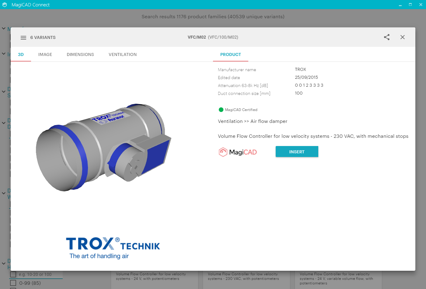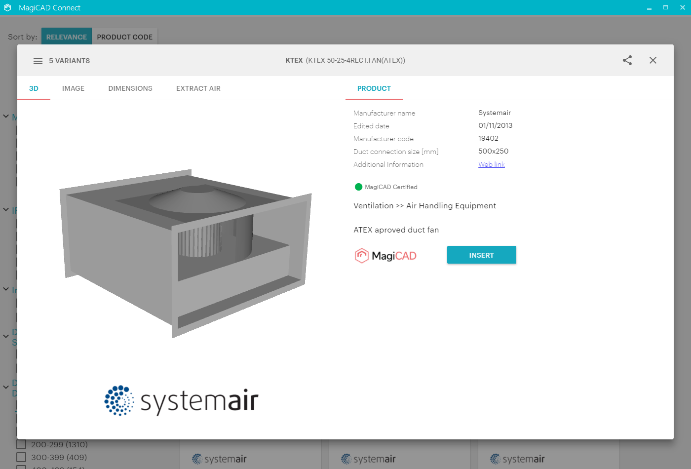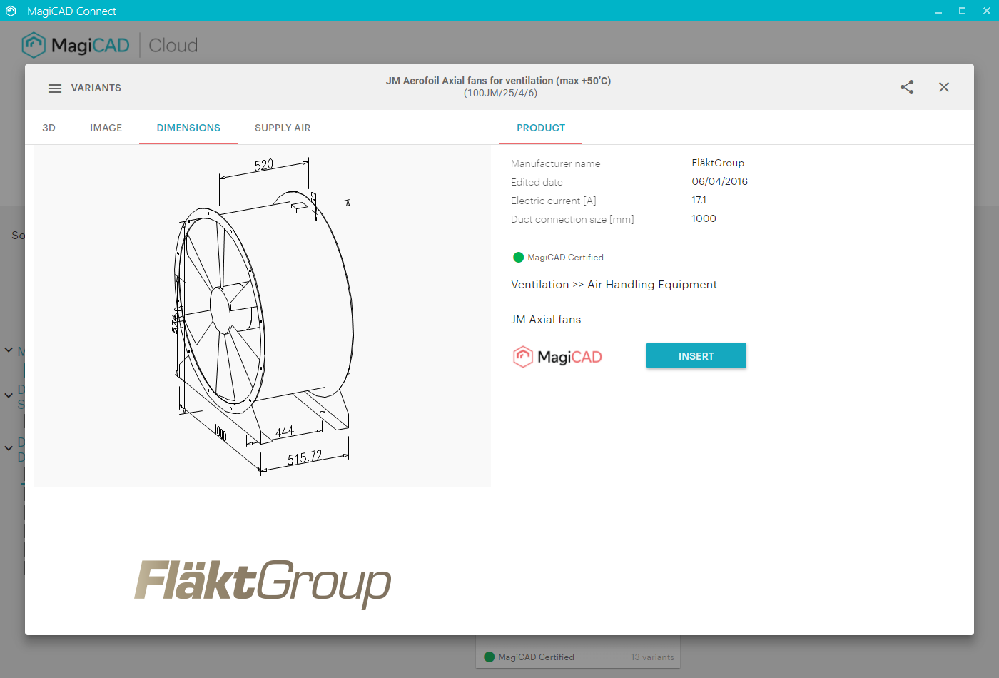 When the selection tools are accessed via MagiCAD Connect, the selected products can be inserted directly into the Revit project in user-defined product sizes and dimensions. MagiCAD Cloud is currently the only BIM platform to offer online selection and configuration tools for MEP products.