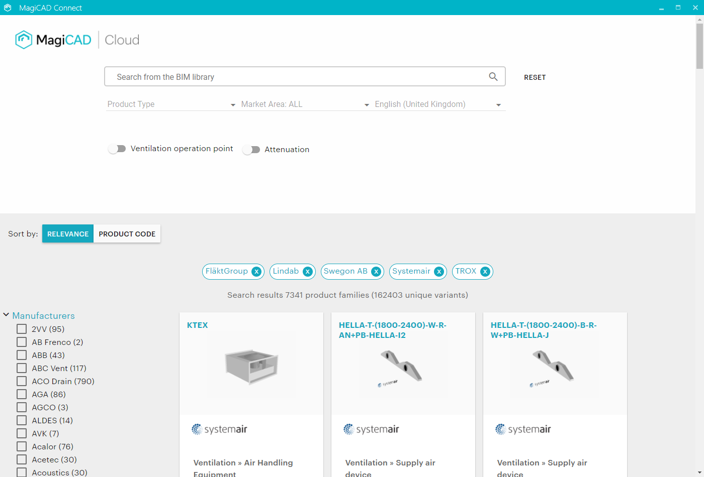 MagiCAD Connect also provides access to MagiCAD Cloud’s online tools for selecting and configuring manufacturer-specific MEP products, such as HVAC, domestic water systems, and electrical design.