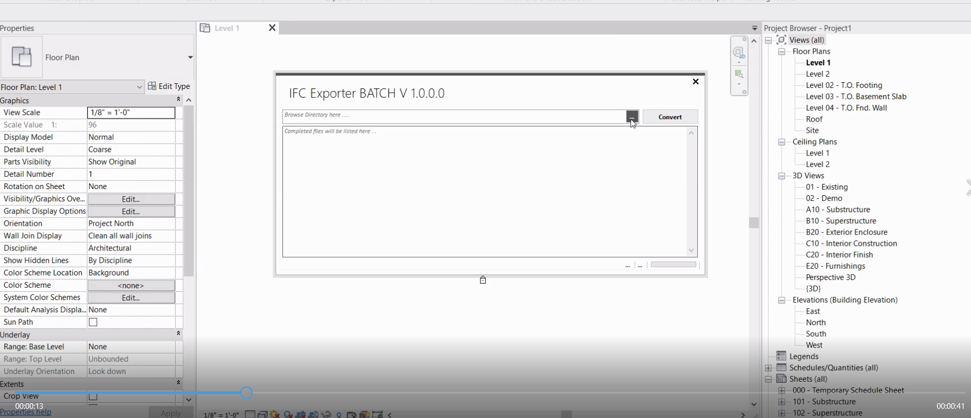 “Batch IFC Export Pro ” plug-in helps you to browse the required Revit projects and convert them into IFC files and saves the converted IFC files.