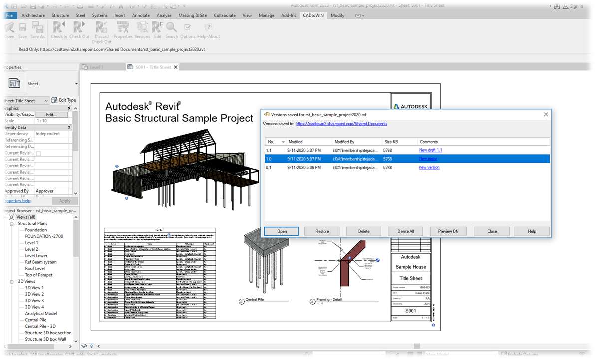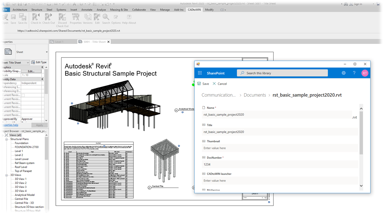 CADtoWIN is a solution made to link Autodesk® AutoCAD® or Autodesk® Revit® based applications to Microsoft SharePoint Technologies much the same way that Microsoft Office applications connect to SharePoint sites.