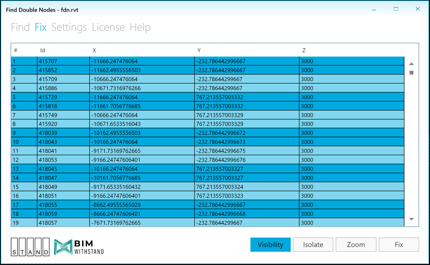 With version 2.0 FDN got matured and now providing new functionalities along with a brand new user interface and a faster multi-threaded finder. Users may check the analytical model with the fundamental functionality “Find”. The list of nodes is visually presented to you via an interactive data grid. Through this grid, the election of a row simultaneously selects and indicates the node visually inside the Revit window.
