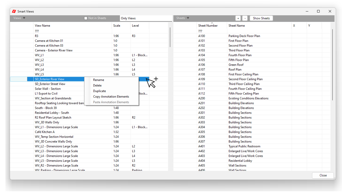 One of the most powerful Autodesk® Revit® sheet and view manager. Duplicate multiple sheets including its views and keep everything in the same position. Create, duplicate, and modify any sheets and opinions easily. Drop any views on sheets without any hassle. This tool makes sheet management in large projects easier than ever.