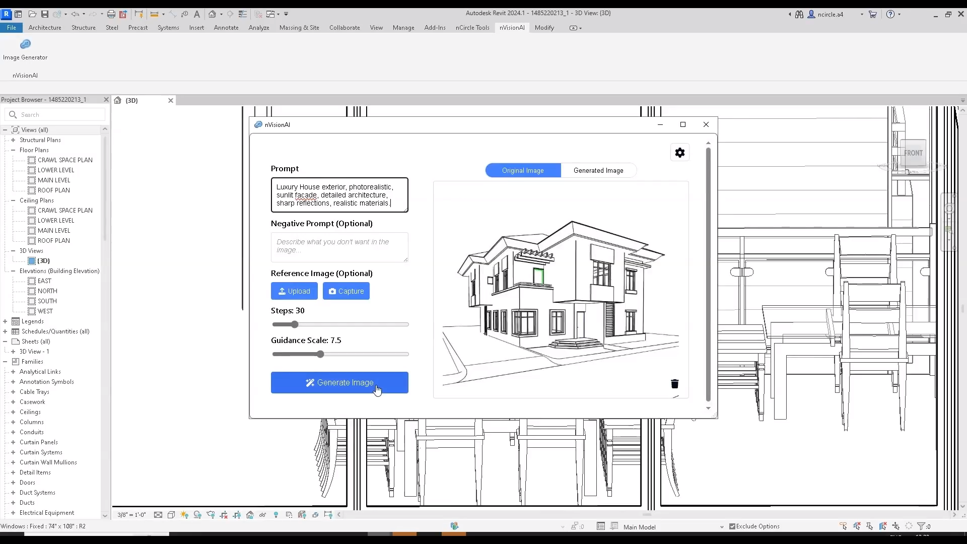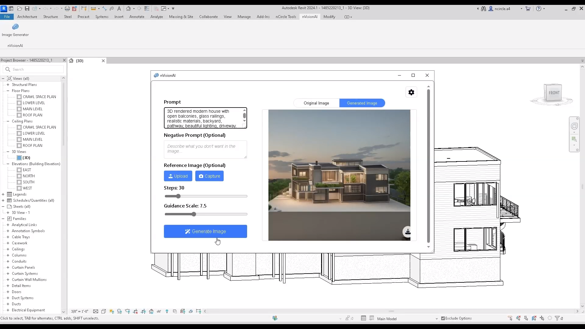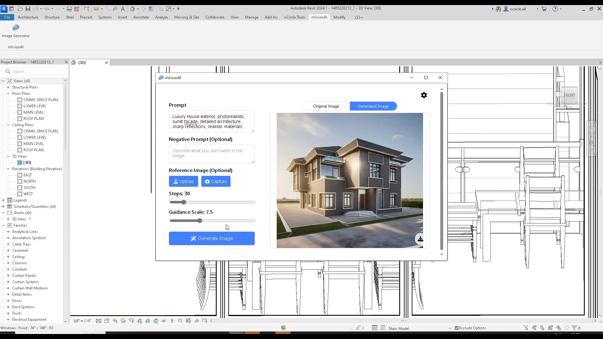 Traditional rendering of Autodesk® Revit® models is time-consuming and requires manual, step-by-step processes. nVisionAI plugin uses AI to automate and accelerate the rendering process by generating high-quality images in seconds.