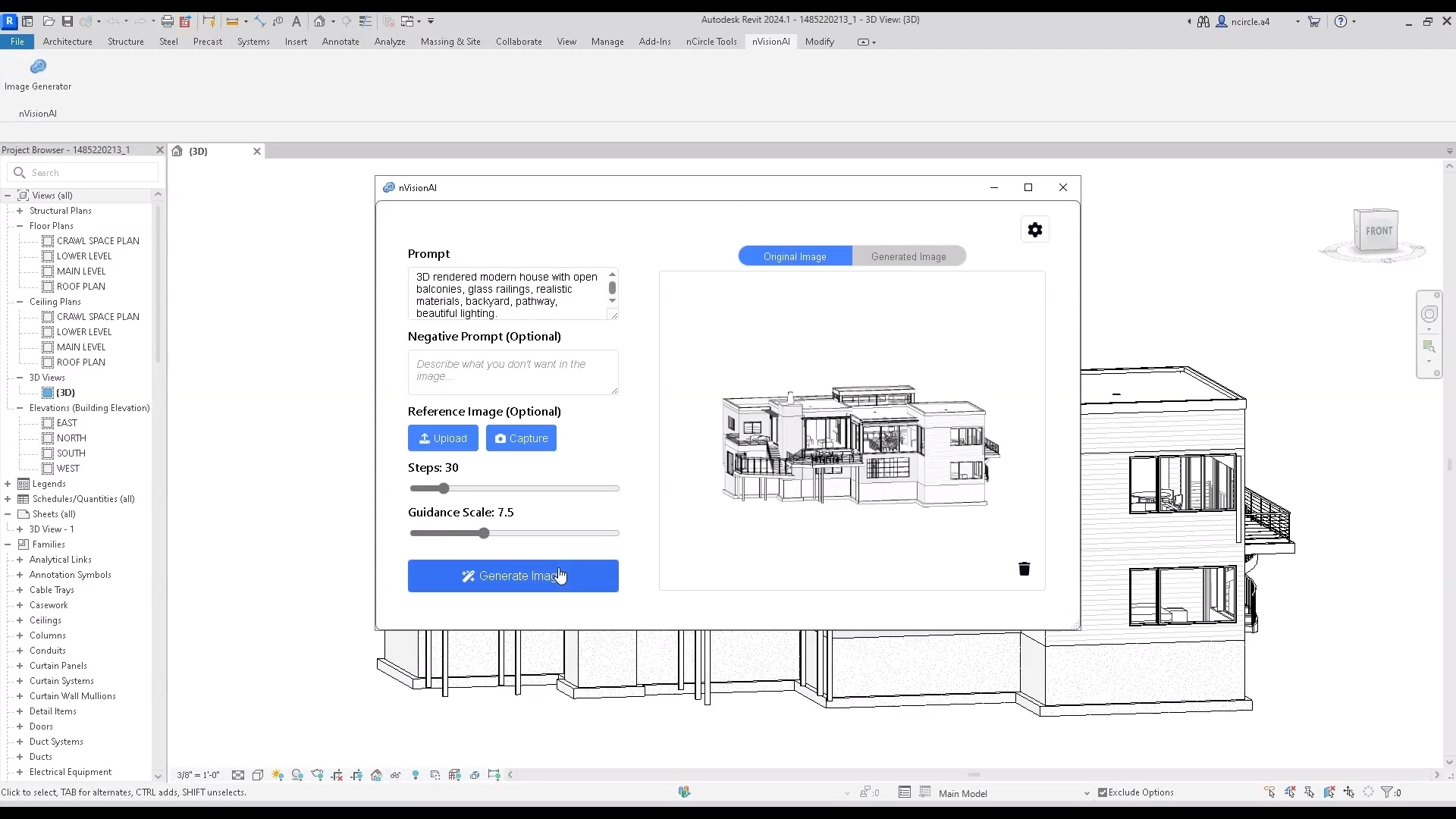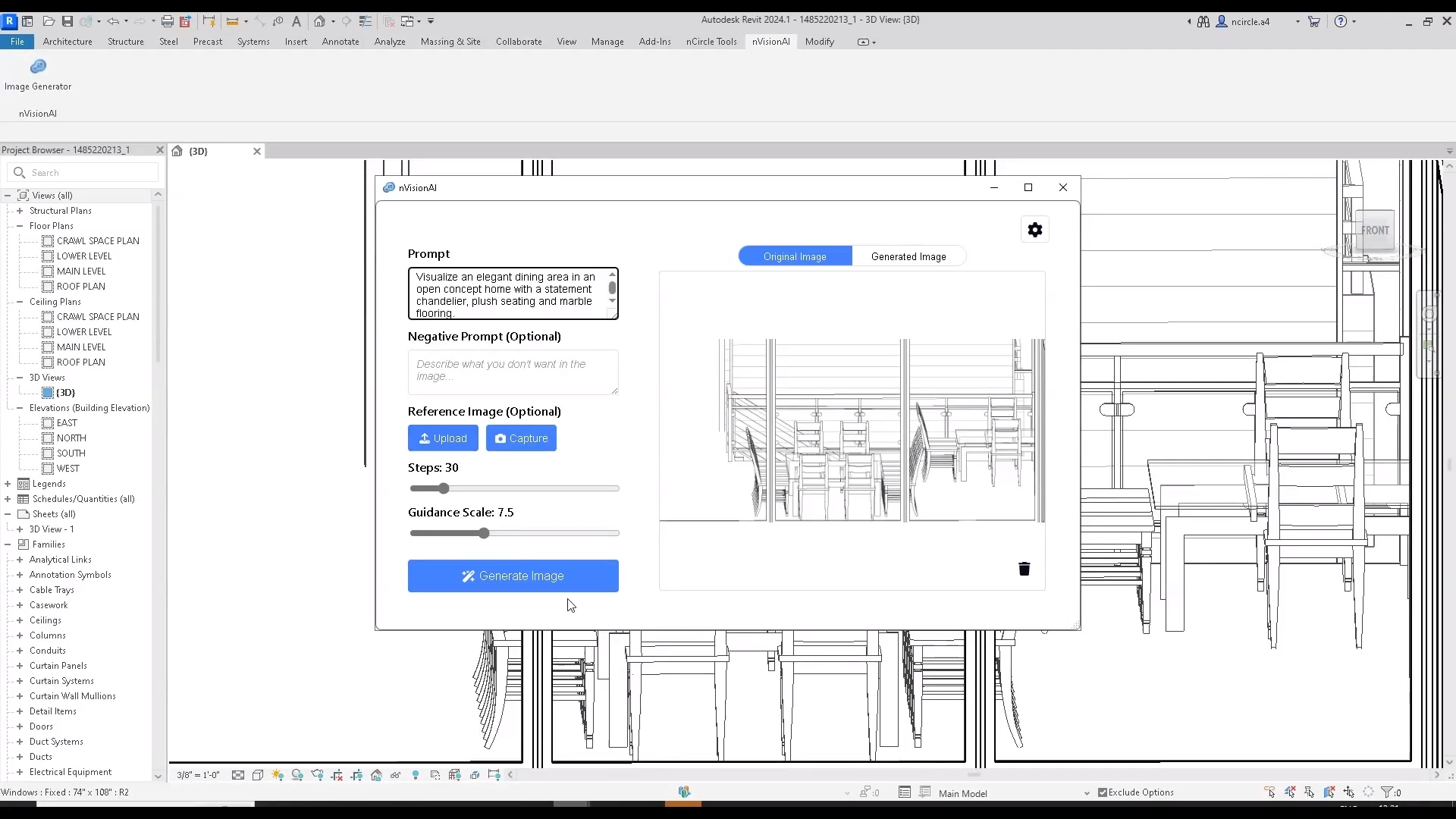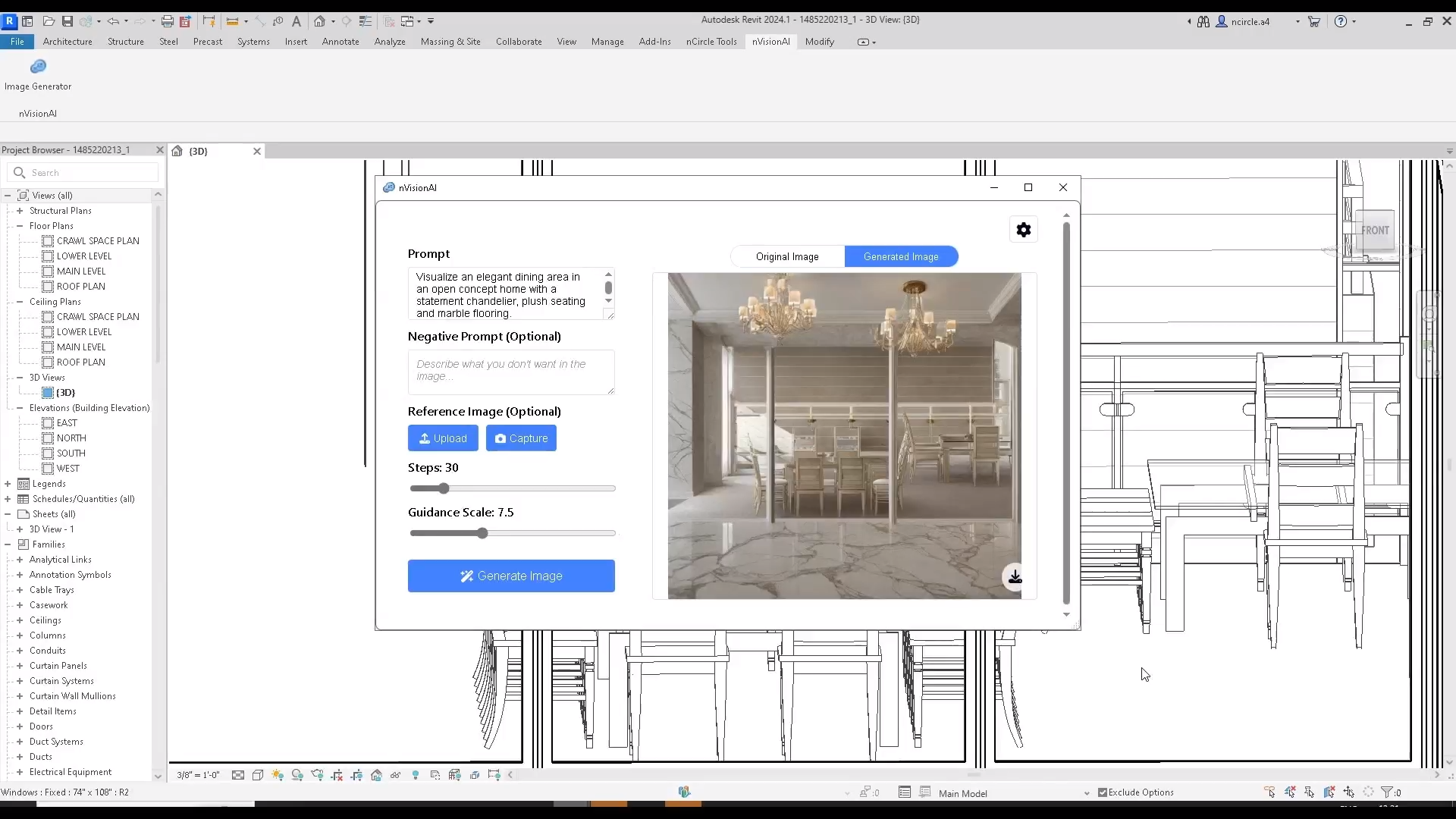 Traditional rendering of Autodesk® Revit® models is time-consuming and requires manual, step-by-step processes. nVisionAI plugin uses AI to automate and accelerate the rendering process by generating high-quality images in seconds.