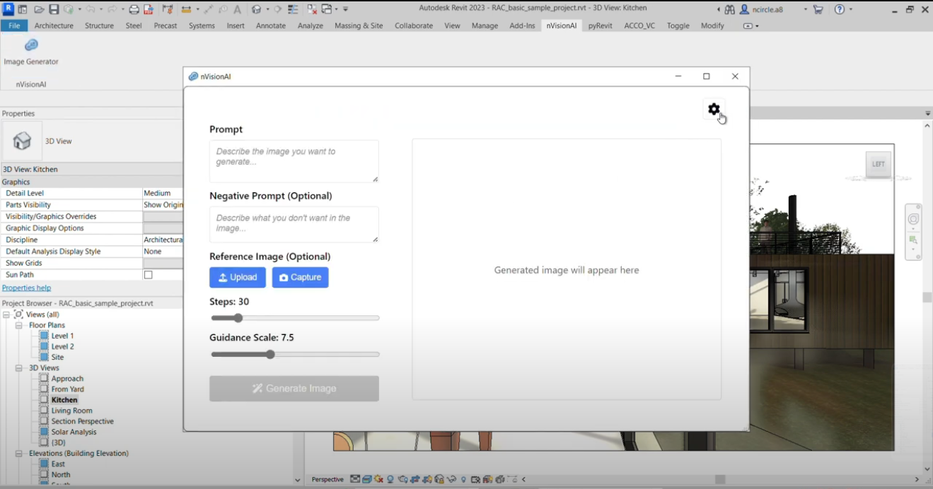 AI-Powered Prompt-Based Rendering: Users can generate images from Revit models simply by providing a text prompt or an image input. This eliminates the need for manual configuration.