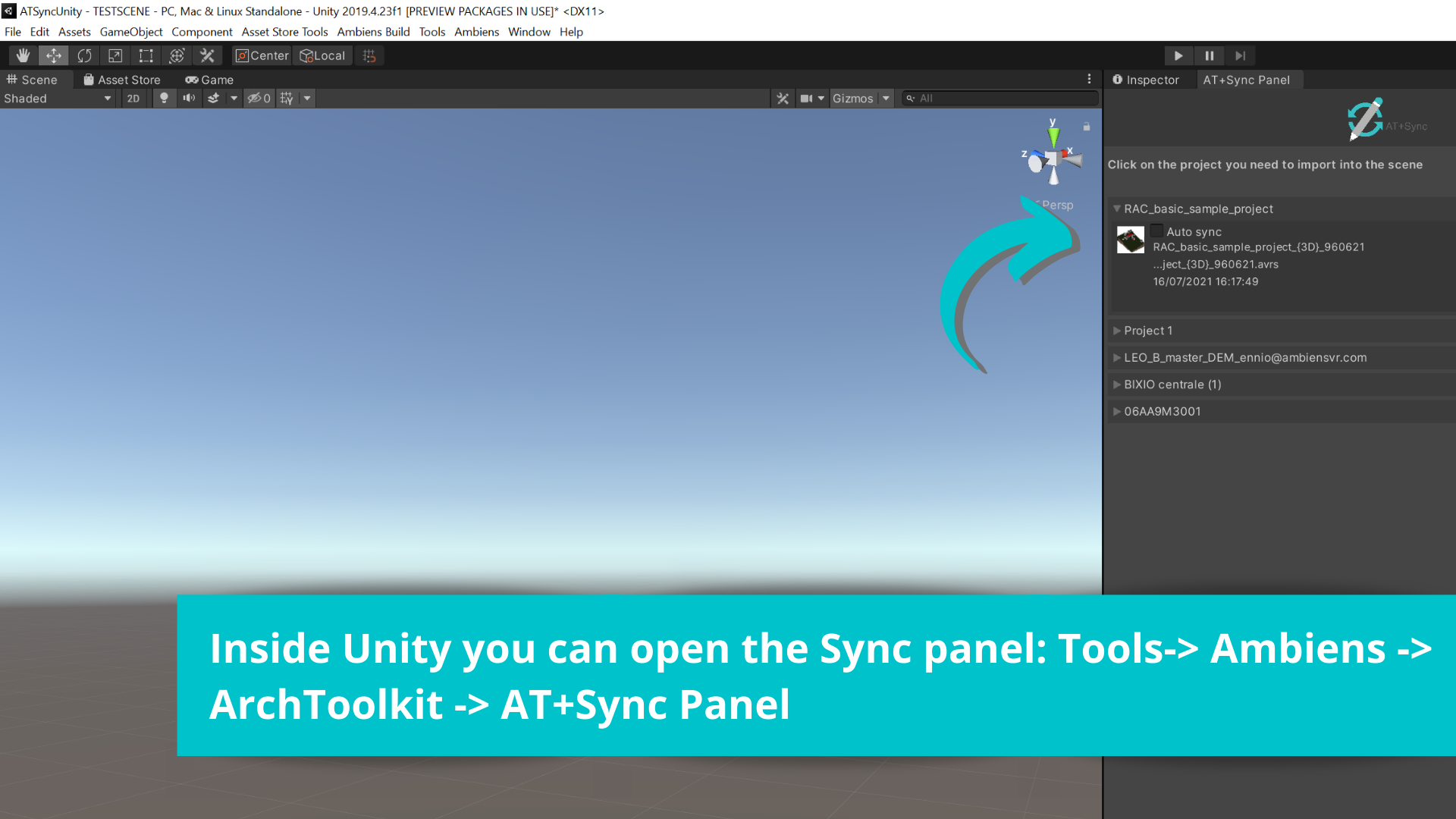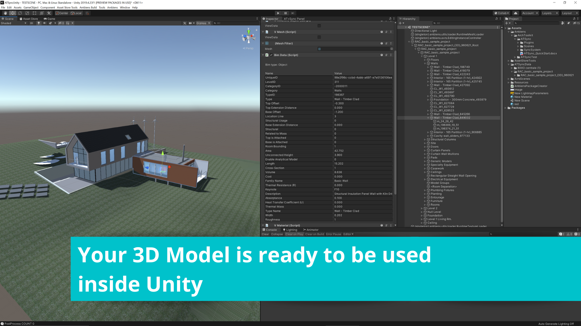 Ambiens Sync lets you export and synchronize Autodesk® Revit® projects into Unity scenes. Connect your usual Revit workflow with Unity and sync any change you make on your file in real time.