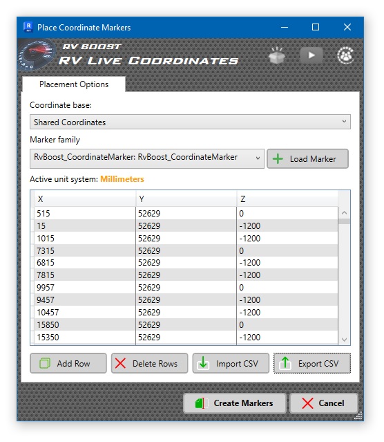 • Allows adding a default coordinate marker family if your model doesn’t have one yet.