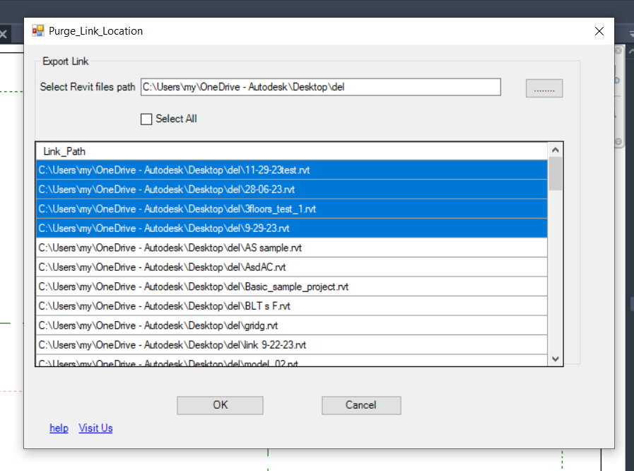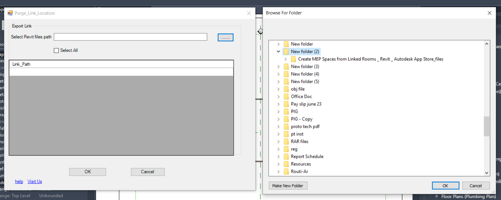 The user will select the folder which contains the Autodesk® Revit® files and the tool will open the files, delete the unused project locations, save the files and close them.