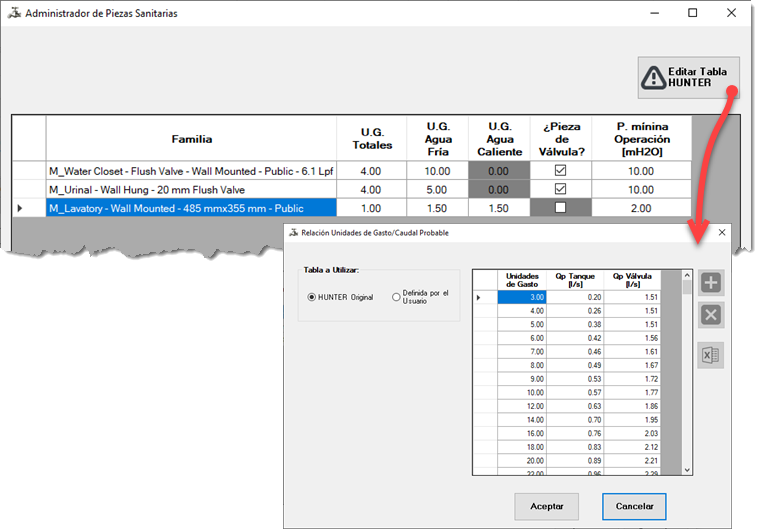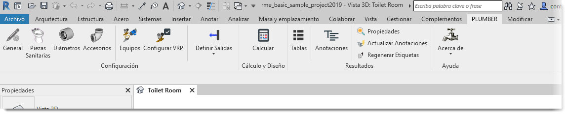 - Fácil Asignación de las Propiedades de las Piezas Sanitarias creadas en el Modelo BIM de Autodesk® Revit® necesarias para el Cálculo y Diseño