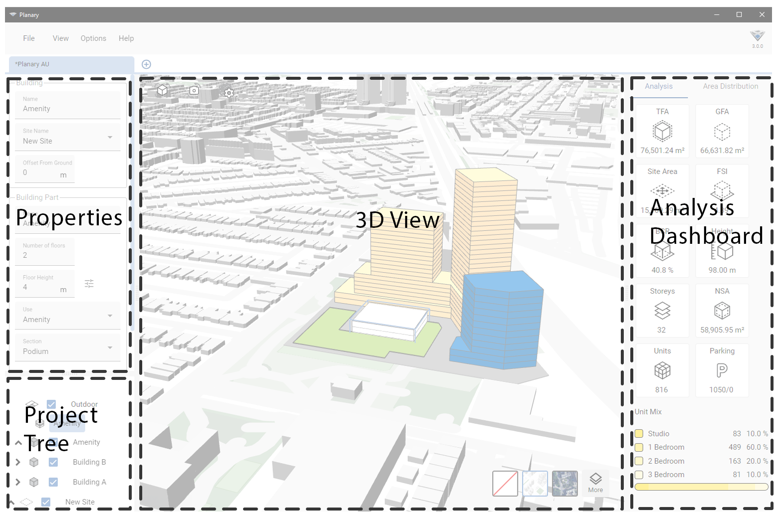 Planary is an essential tool for architects and urban planners in the early design stages, simplifying your project planning.