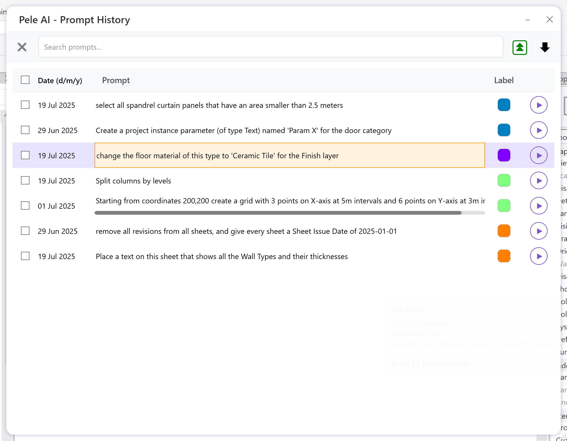 Using cutting-edge artificial intelligence, Pele enables you to interact intuitively with Revit. Simply write or describe your task, and Pele will try to understand your needs and execute the work seamlessly. Whether it's generating views, creating dimensions, organizing elements, graphic overrides, or running custom commands, Pele reduces the hassle of complex tedious operations.