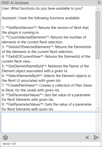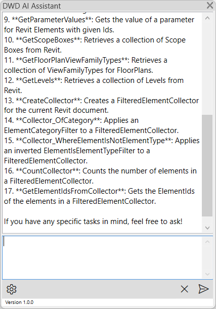 Transform your Autodesk® Revit® experience with DWD AI Assistant, the ultimate add-in that integrates AI directly into your Revit environment. With DWD AI Assistant, you can seamlessly chat with an intelligent assistant that understands and interacts with your Revit models using the Revit API.