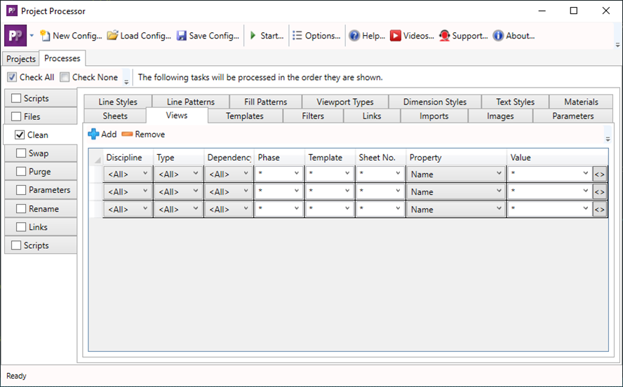 This tool can run scripts, remove backup files, clean, purge, swap types, and materials, rename elements, add shared parameters, and manipulate links on multiple projects at once.