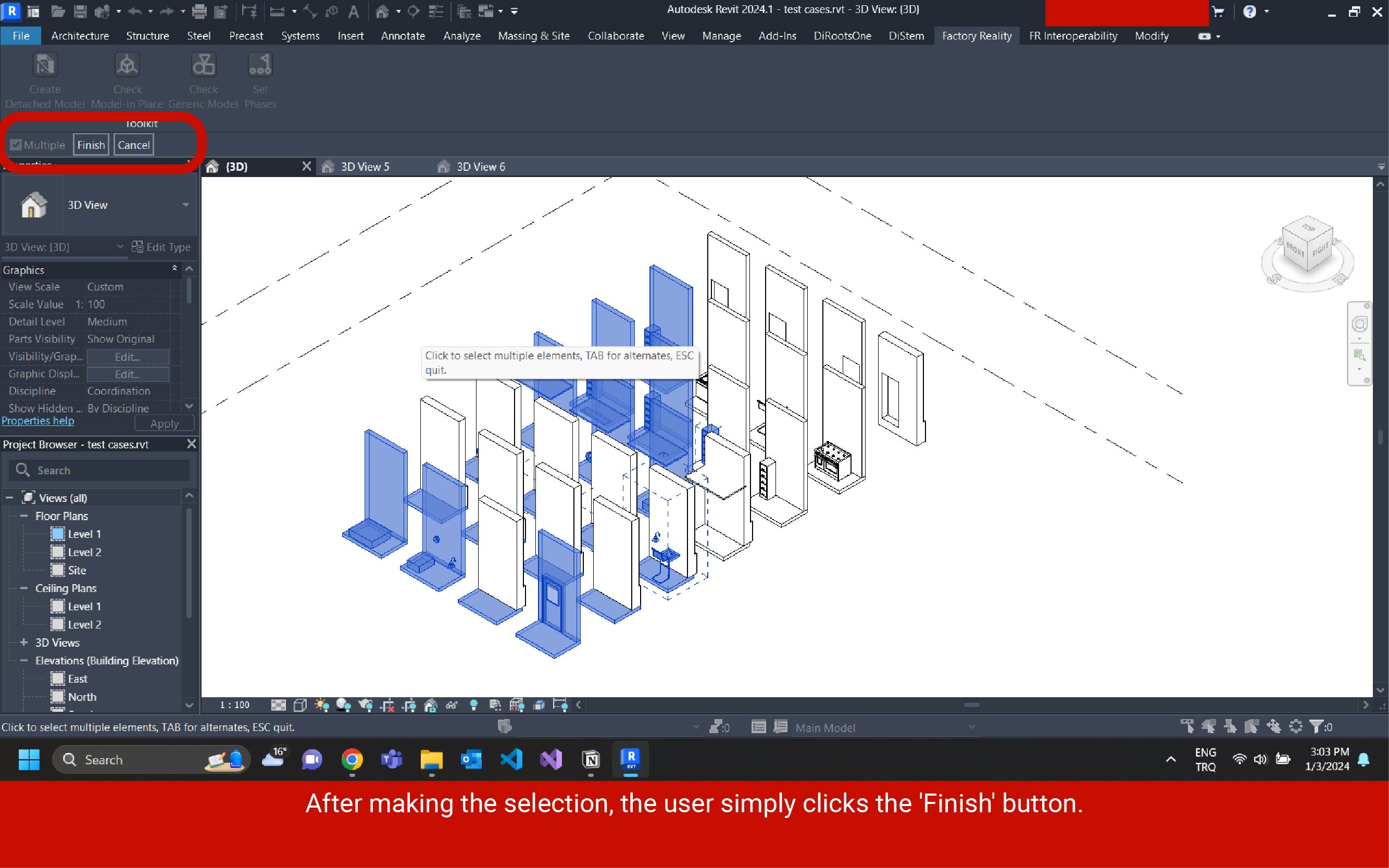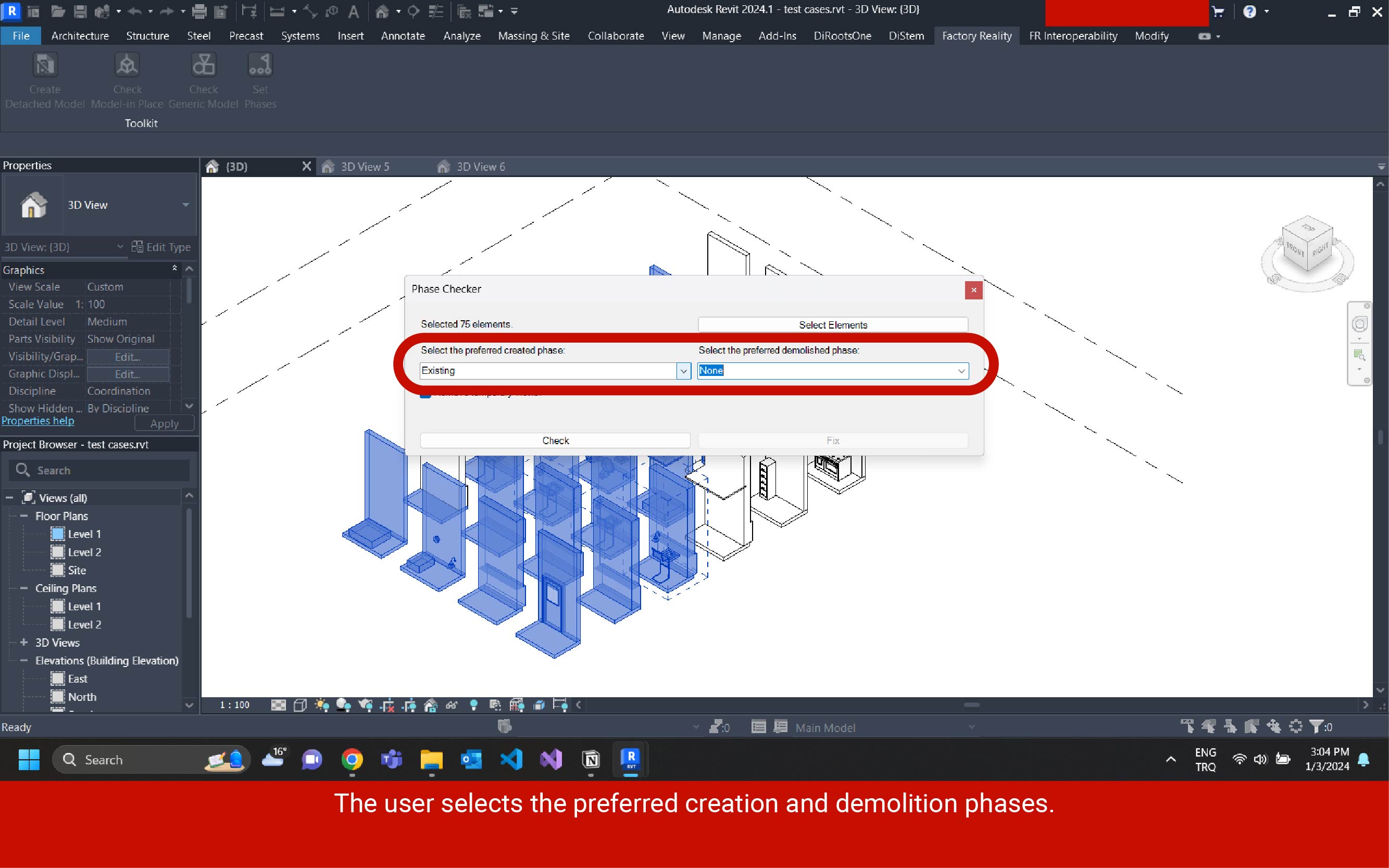 In projects with multiple phases, tracking all phases in the modeling process can be cumbersome. Additionally, after completing the modeling phase, selecting and modifying the phases of multiple elements simultaneously in Revit is challenging. The FR Toolkit addresses these challenges, allowing users to easily manage phases during the modeling process. Furthermore, the tool provides the ability to identify elements in the wrong phase, offering enhanced control over the BIM model.