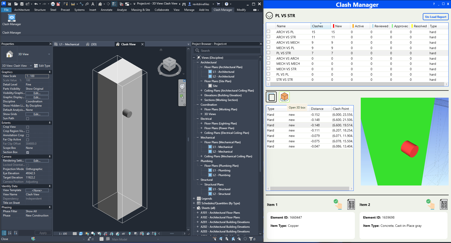 • View clash reports generated by Autodesk® Navisworks® directly within the Autodesk® Revit® interface.